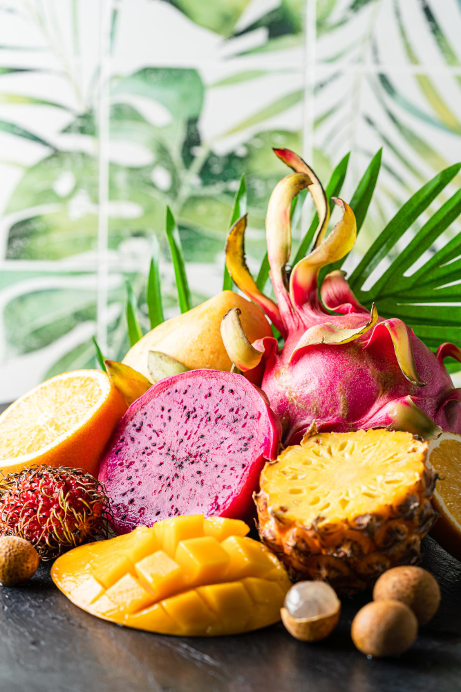 - Abricot AOP du Roussillon, cerise de Céret, figue, framboise, mangue, ananas, banane…