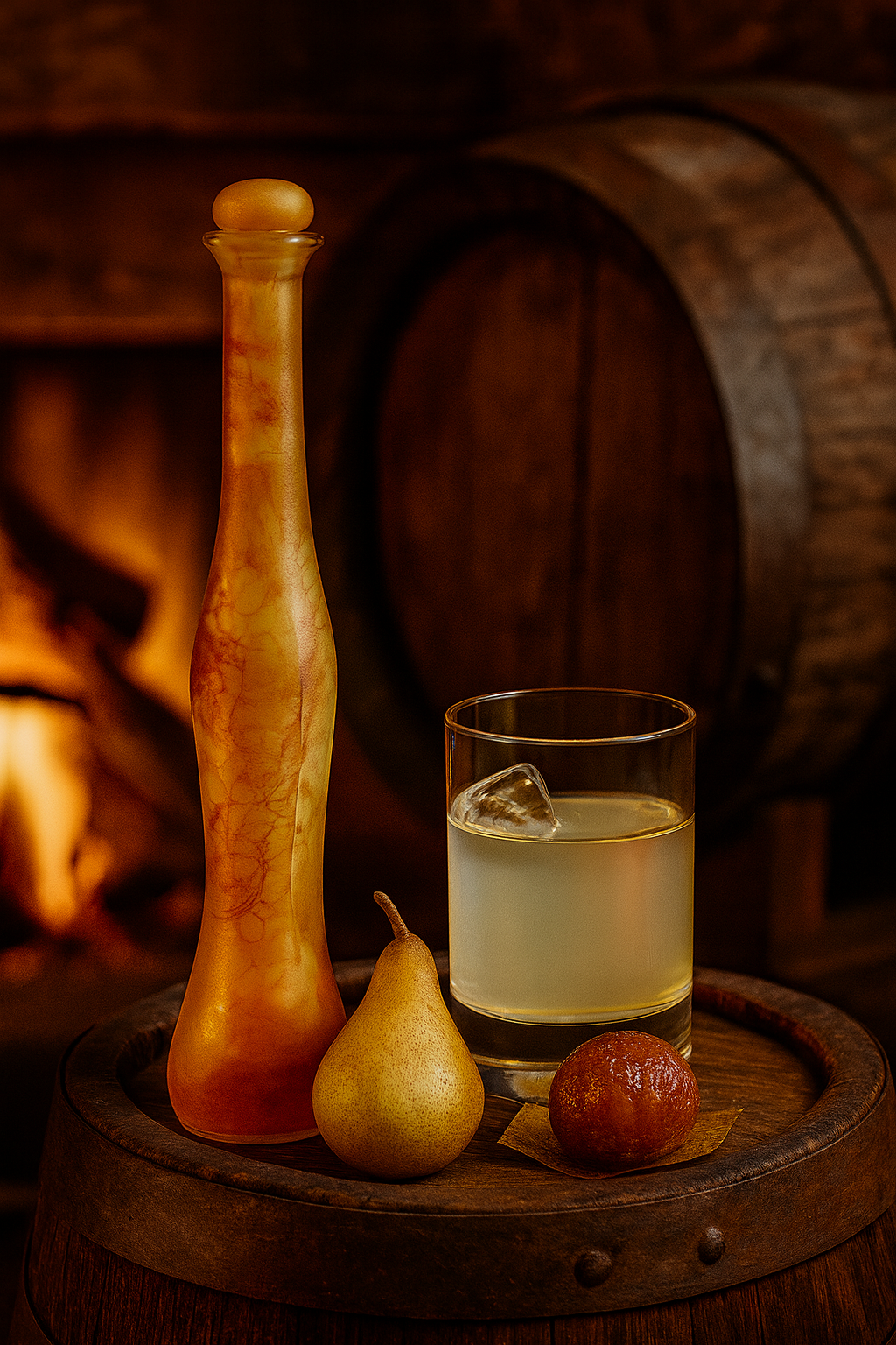 Cette macération patiente, d’environ six mois, leur confère des arômes délicatement fruités et floraux, révélant la finesse de la poire et la richesse du marron.
