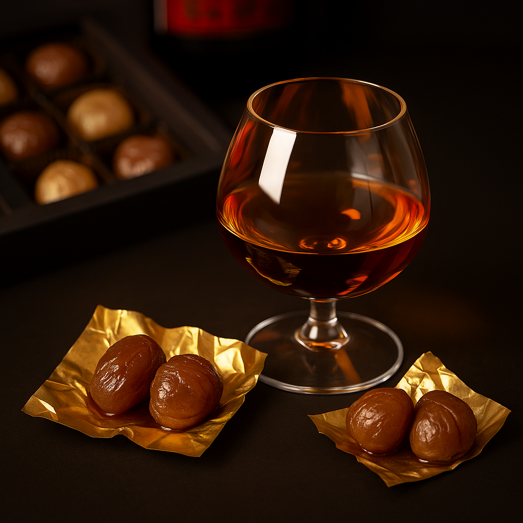 Born from the encounter between two ancestral traditions — artisanal confectionery and the distillation of cognac — they marry the melting sweetness of chestnuts with the warmth of a noble spirit.