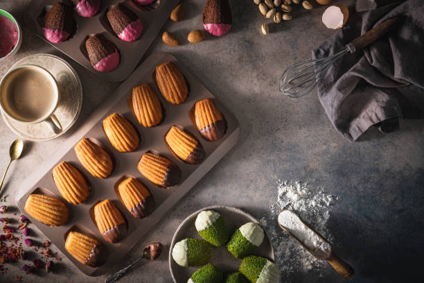 Preheat the oven to 200°C (392°F). Fill the madeleine moulds three-quarters full and bake.