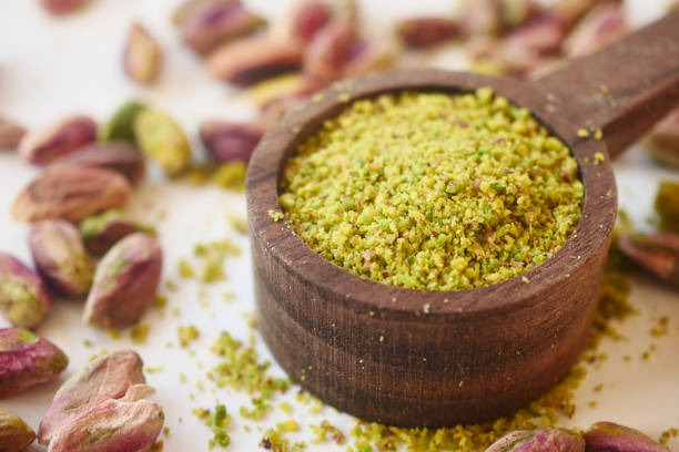 Let yourself be charmed by the aromatic elegance of our organic Brontë PDO pistachios flour, a Sicilian jewel grown on the volcanic slopes of Mount Etna.