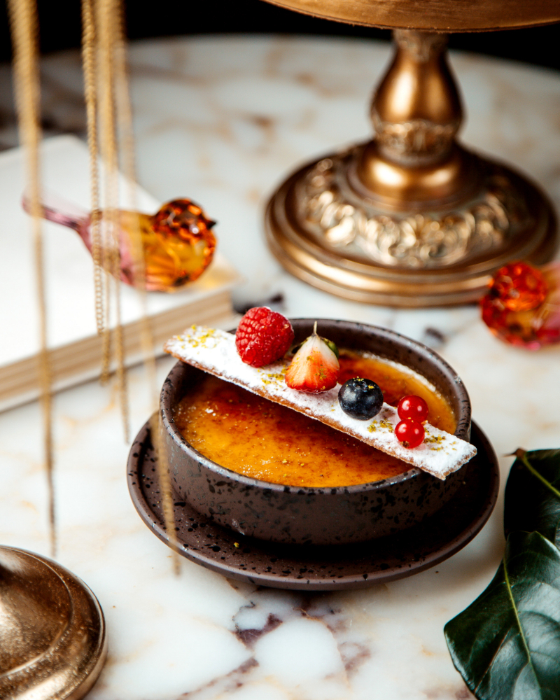 Before serving, sprinkle with raw sugar and caramelize with a kitchen torch.